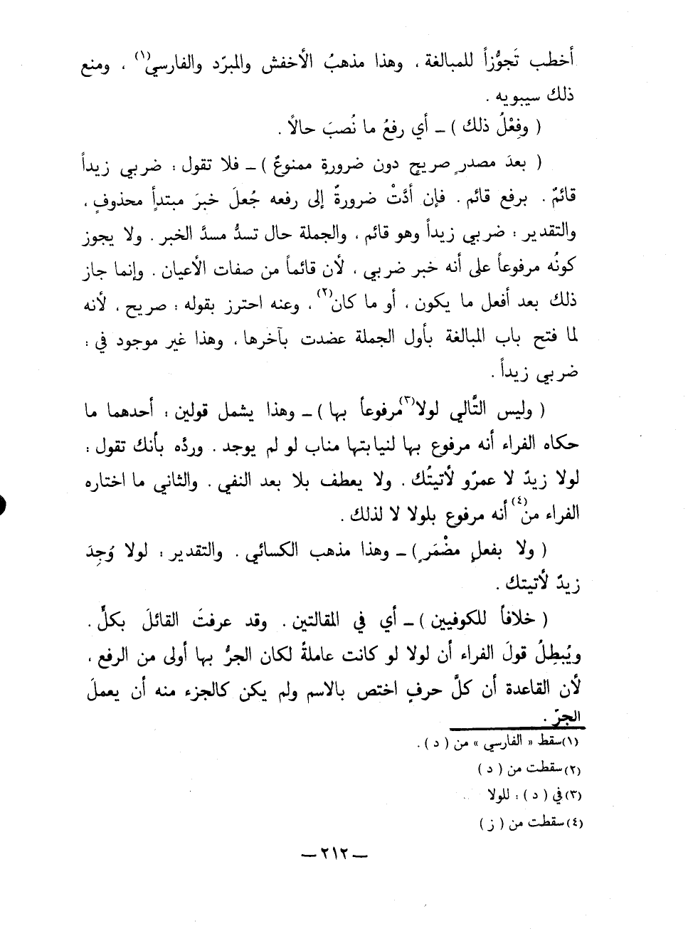 (خلافاً للكوفيين) - أي في المقالتين. وقد عرفت القائل بكل. ويُبطِلُ قول الفراء أن لولا لو كانت عاملةً لكان الجرُّ بها أولى من الرفع. لأن القاعدة أن كلُ حرفٍ اختص بالاسم ولم يكن كالجزء منه أن يعمل الجر.