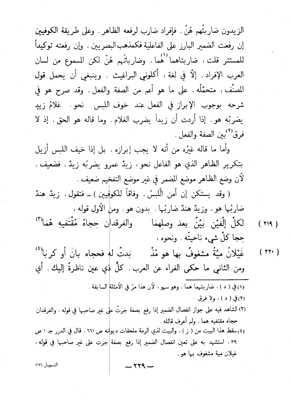 (وقد يستكن إن أمن اللبسُ، وفاقاً للكوفيين) - فتقول: زيدٌ هندٌ ضاربُها هو، وزيدٌ هندٌ ضاربها، بدون هو. ومن الأول قوله: