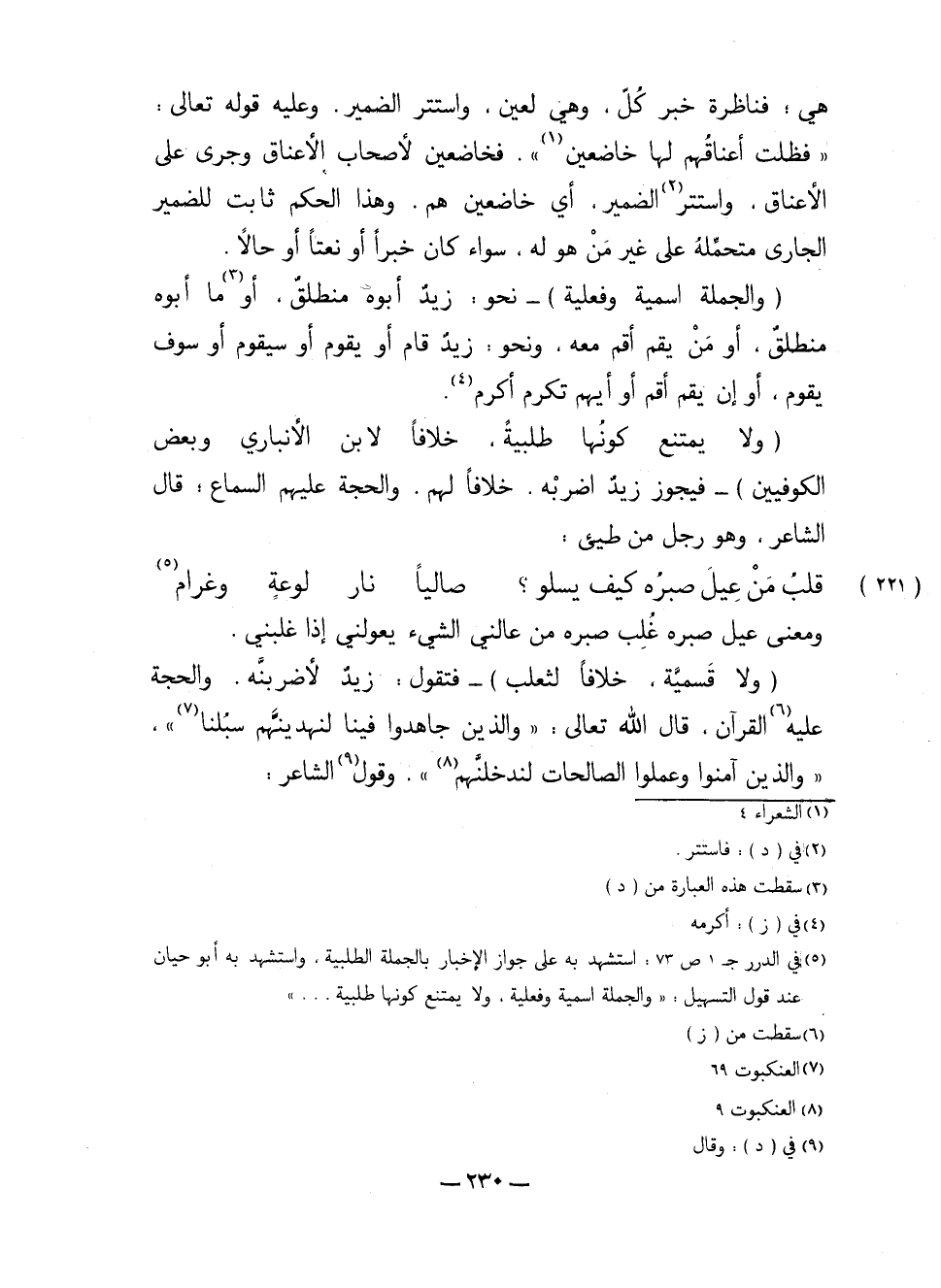 (ولا يمتنع كونها طلبيةً، خلافاً لابن الأنباري وبعض الكوفيين) - فيجوز زيدٌ اضربْه، خلافاً لهم، والحجة عليهم السماع؛ قال الشاعر، وهو رجل من طيء: