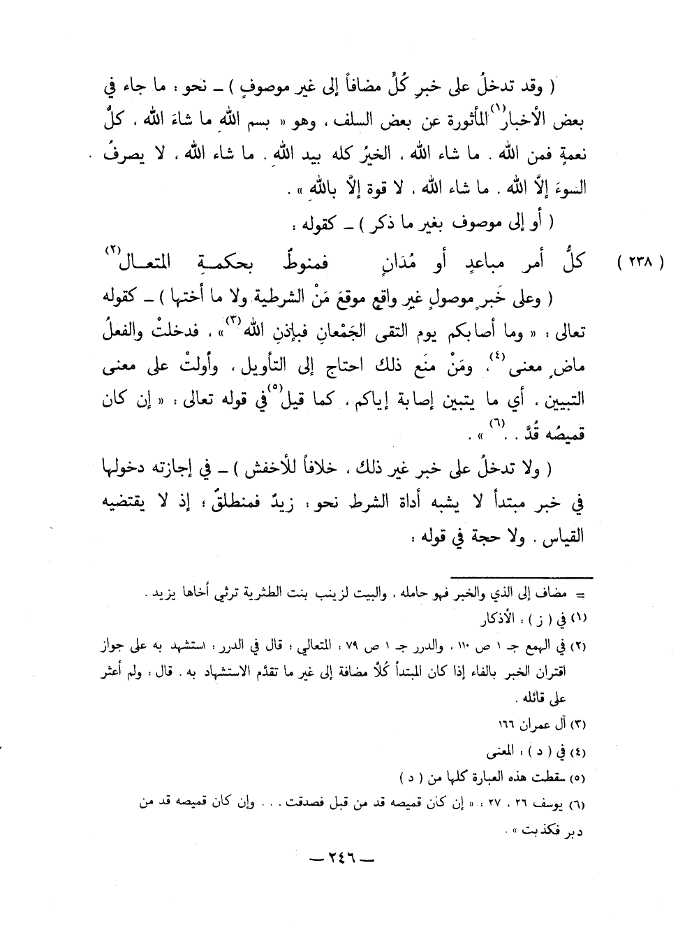 (238) كل أمر مباعدٍ أو مُدانٍ ... فمنوط بحكمة المتعال