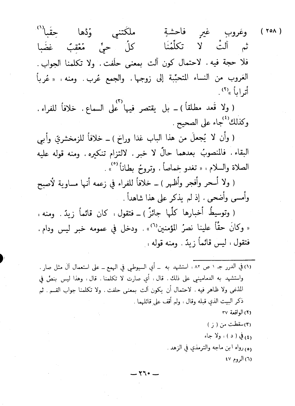 فلا حجة فيه، لاحتمال كون آلت بمعنى حلفت، ولا تكلمنا الجواب. العَروب من النساء المتحببة إلى زوجها، والجمع عُرب. ومنه: "عُرباً أتراباً".