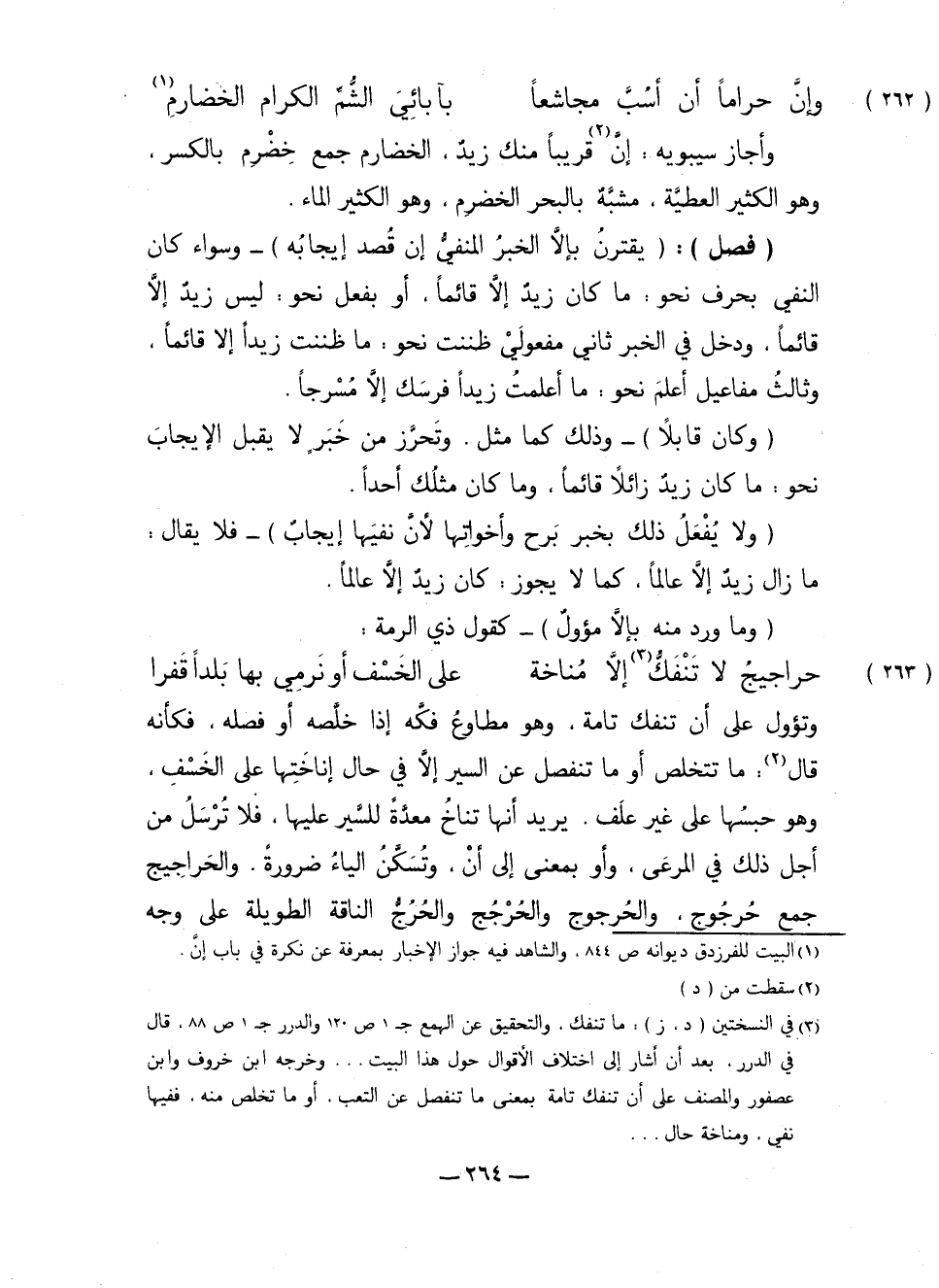 (262) وإن حراماً أن أسب مجاشعاً ... بآبائي الشم الكرام الخضارم