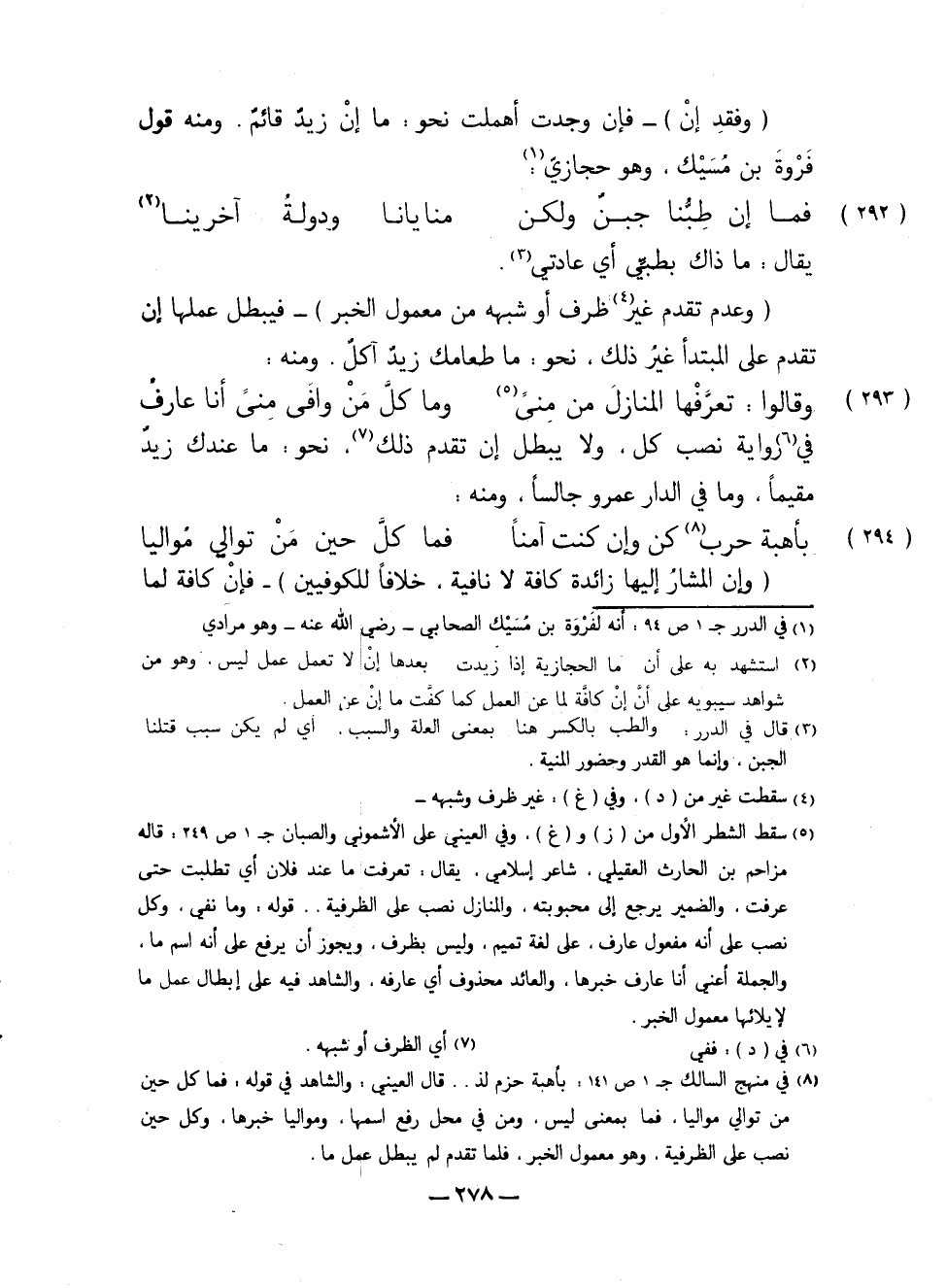 (وفقدِ إنْ) - فإن وجدت أهملت نحو: ما إنْ زيدٌ قائمٌ. ومنه قول فروة بن مسيك، وهو حجازي: