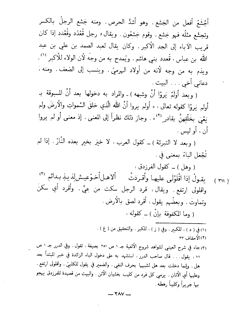 أجْشَعُ أفعل من الجشع، وهو أشد الحرص، ومنه جشع الرجل بالكسر وتجشع مثله فهو جشع، وقوم جشعون. ويقال: رجل قُعْدُد وقُعْدَد إذا كان قريب الآباء إلى الجد الأكبر، وكان يقال لعبد الصمد بن علي بن عبد الله بن عباس: قُعدد بني هاشم، ويُمدح به من وجه لأن الولاء للأكبر، ويذم به من وجه لأنه من أولاد الهرمي، وينسب إلى الضعف، ومنه: دعاني أخي ... البيت.