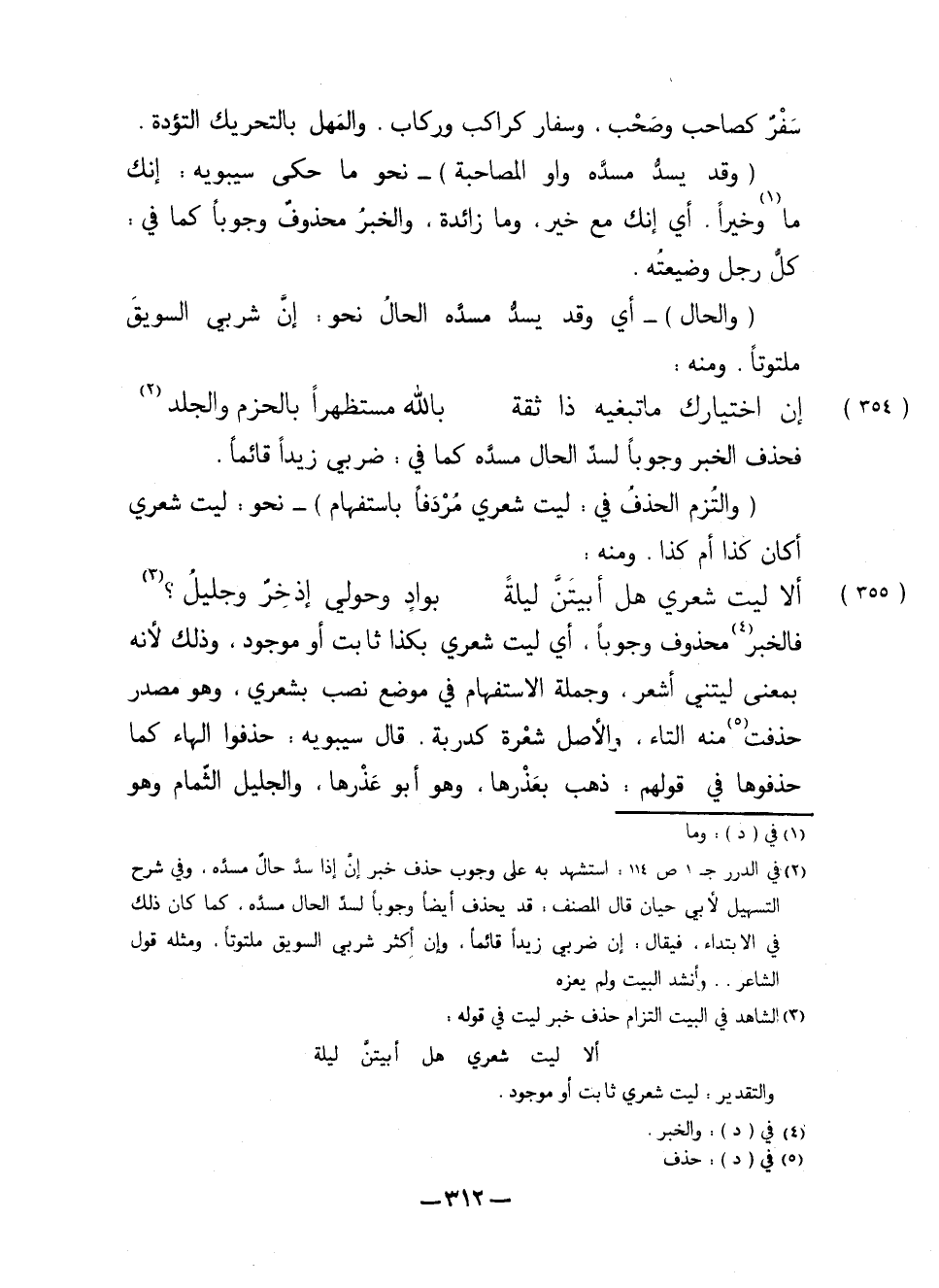 فالخبر محذوف وجوباً، أي ليت شعري بكذا ثابت أو موجود، وذلك لأنه بمعنى ليتني أشعر، وجملة الاستفهام في موضع نصب بشعري، وهو مصدر حذفت منه التاء، والأصل شعرة كدربة، قال سيبويه: حذفوا الهاء كما حذفوها في قولهم: ذهب بعذرها، وهو أبو عذرها، والجليل الثمام وهو