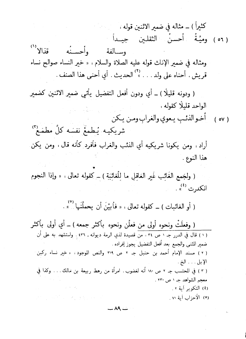 كثيرًا) -مثاله في ضمير الاثنين قوله: