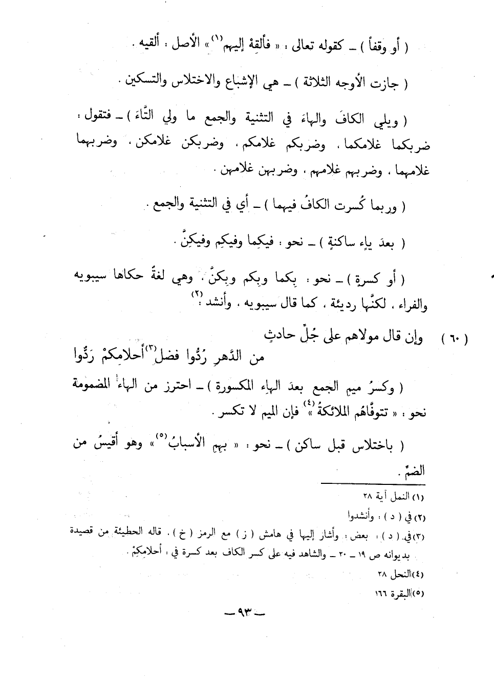 (ويلي الكاف والهاء في التثنية والجمع ما ولي التاء) -فتقول: ضربكما غلامكما، وضربكم غلامكم، وضربكن غلامكن، وضربهما غلامهما، وضربهم غلامهم، وضربهن غلامهن.