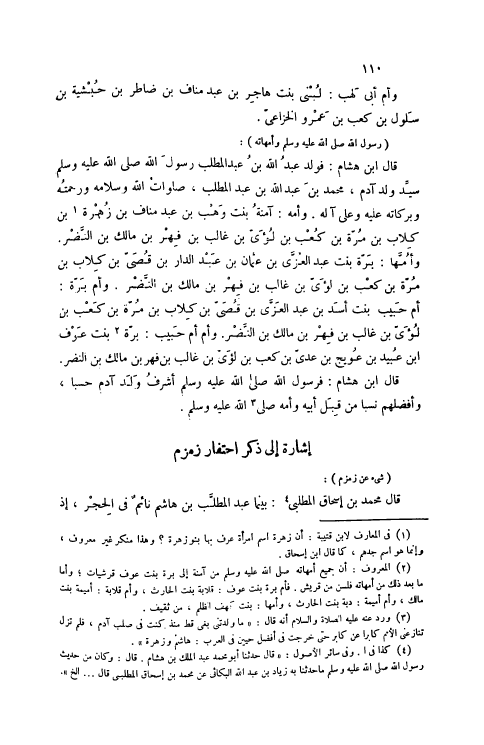 قَالَ ابْنُ هِشَامٍ: فَوَلَدَ عَبْدُ اللَّهِ بْنُ عَبْدِ الْمُطَّلِبِ رَسُولَ اللَّهِ صَلَّى اللهُ عَلَيْهِ وَسَلَّمَ سَيِّدَ وَلَدِ آدَمَ، مُحَمَّدَ بْنَ عَبْدِ اللَّهِ بْنِ عَبْدِ الْمُطَّلِبِ، صَلَوَاتُ اللَّهِ وَسَلَامُهُ وَرَحْمَتُهُ وَبَرَكَاتُهُ عَلَيْهِ وَعَلَى آلِهِ. وَأُمِّهِ: آمِنَةُ بِنْتُ وَهْبِ بْنِ عَبْدِ مَنَافِ بْنِ زُهْرَةَ [1] بْنِ كِلَابِ بْنِ مُرَّةَ بْنِ كَعْبِ بْنِ لُؤَيِّ بْنِ غَالِبِ بْنِ فِهْرِ بْنِ مَالِكِ بْنِ النَّضْرِ.