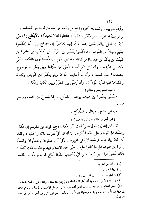 وَخَرَجَتْ لَهُ خُزَاعَةُ وَبَنُو بَكْرٍ فَالْتَقَوْا، فَاقْتَتَلُوا قِتَالًا شَدِيدًا (بِالْأَبْطَحِ) [2] ، حَتَّى كَثُرَتْ الْقَتْلَى فِي الْفَرِيقَيْنِ جَمِيعًا، ثُمَّ إنَّهُمْ تَدَاعَوْا إلَى الصُّلْحِ وَإِلَى أَنْ يُحَكِّمُوا بَيْنَهُمْ رَجُلًا مِنْ الْعَرَبِ، فَحَكَّمُوا يَعْمُرَ بْنَ عَوْفِ بْنِ كَعْبِ بْنِ عَامِرِ [3] بْنِ لَيْثِ بْنِ بَكْرِ بْنِ عَبْدِ مَنَاةَ بْنِ كِنَانَةَ، فَقَضَى بَيْنَهُمْ بِأَنَّ قُصَيًّا أَوْلَى بِالْكَعْبَةِ وَأَمْرِ مَكَّةَ مِنْ خُزَاعَةَ، وَأَنَّ كُلَّ دَمٍ أَصَابَهُ قُصَيٌّ مِنْ خُزَاعَةَ وَبَنِيَّ بَكْرٍ، مَوْضُوعٌ يَشْدَخُهُ [4] تَحْتَ قَدَمَيْهِ، وَأَنَّ مَا أَصَابَتْ خُزَاعَةُ وَبَنُو بَكْرٍ مِنْ قُرَيْشٍ وَكِنَانَةَ وَقُضَاعَةَ فَفِيهِ الدِّيَةُ مُؤَدَّاةٌ، وَأَنْ يُخَلَّى بَيْنَ قُصَيٍّ وَبَيْنَ الْكَعْبَةِ وَمَكَّةَ.