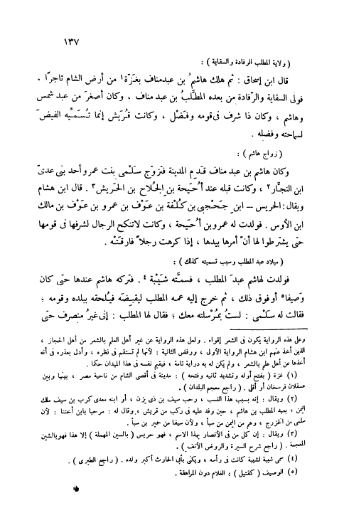 قَالَ ابْنُ إسْحَاقَ: ثُمَّ هَلَكَ هَاشِمُ بْنُ عَبْدِ مَنَافٍ بِغَزَّةَ [1] مِنْ أَرْضِ الشَّامِ تَاجِرًا، فَوَلِيَ السِّقَايَةَ وَالرِّفَادَةَ مِنْ بَعْدِهِ الْمُطَّلِبُ بْنُ عَبْدِ مَنَافٍ، وَكَانَ أَصْغَرَ مِنْ عَبْدِ شَمْسٍ وَهَاشِمٍ، وَكَانَ ذَا شَرَفٍ فِي قَوْمِهِ وَفَضْلٍ، وَكَانَتْ قُرَيْشٌ إنَّمَا تُسَمِّيهِ الْفَيْضَ لِسَمَاحَتِهِ وَفَضْلِهِ.