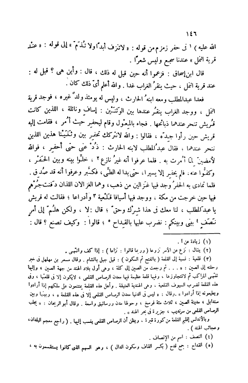 فَعَدَا عَبْدُ الْمُطَّلِبِ وَمَعَهُ ابْنُهُ الْحَارِثُ، وَلَيْسَ لَهُ يَوْمَئِذٍ وَلَدٌ غَيْرَهُ، فَوَجَدَ قَرْيَةَ النَّمْلِ، وَوَجَدَ الْغُرَابَ يَنْقُرُ عِنْدَهَا بَيْنَ الْوَثَنَيْنِ: إسَافٍ وَنَائِلَةٍ، اللَّذَيْنِ كَانَتْ قُرَيْشٌ تَنْحَرُ عِنْدَهُمَا ذَبَائِحَهَا. فَجَاءَ بِالْمِعْوَلِ وَقَامَ لِيَحْفِرَ حَيْثُ أُمِرَ، فَقَامَتْ إلَيْهِ قُرَيْشٌ حِينَ رَأَوْا جِدَّهُ، فَقَالُوا: وَاَللَّهِ لَا نَتْرُكُكَ تَحْفِرُ بَيْنَ وَثَنَيْنَا هَذَيْنِ اللَّذَيْنِ نَنْحَرُ عِنْدَهُمَا، فَقَالَ عَبْدُ الْمُطَّلِبِ لِابْنِهِ الْحَارِثِ: ذُدْ عَنِّي حَتَّى أحفر، فو الله لَأَمْضِيَنَّ لِمَا أُمِرْتُ بِهِ. فَلَمَّا عَرَفُوا أَنَّهُ غَيْرُ نَازِعٍ [2] ، خَلَّوْا بَيْنَهُ وَبَيْنَ الْحَفْرِ، وَكَفُّوا عَنْهُ، فَلَمْ يَحْفِرْ إلَّا يَسِيرًا، حَتَّى بَدَا لَهُ الطَّيُّ، فَكَبَّرَ وَعَرَفُوا أَنَّهُ قَدْ صُدِقَ.