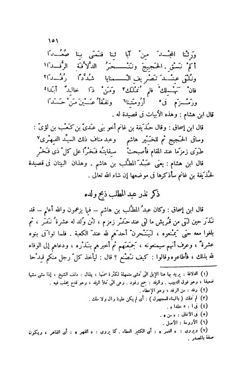 قَالَ ابْنُ هِشَامٍ: يَعْنِي عَبْدَ الْمُطَّلِبِ بْنَ هَاشِمٍ. وَهَذَانِ الْبَيْتَانِ فِي قَصِيدَةٍ لِحُذَيْفَةَ بْنِ غَانِمٍ سَأَذْكُرُهَا فِي مَوْضِعِهَا إنْ شَاءَ اللَّهُ تَعَالَى.