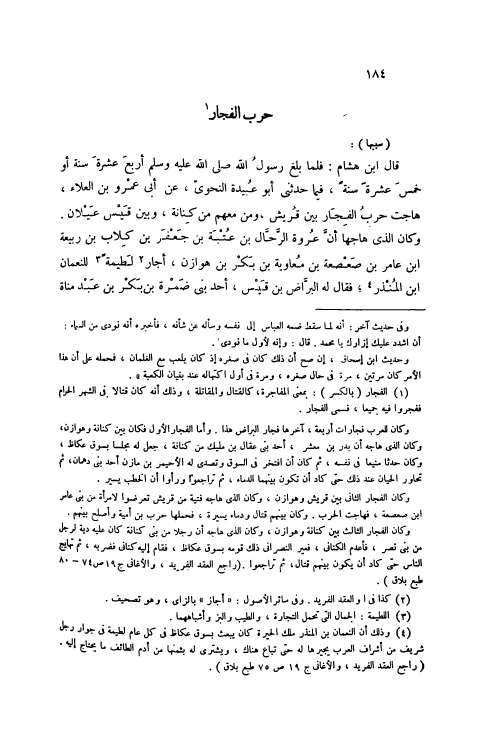 قَالَ ابْنُ هِشَامٍ: فَلَمَّا بَلَغَ رَسُولُ اللَّهِ صَلَّى اللهُ عَلَيْهِ وَسَلَّمَ أَرْبَعَ عَشْرَةَ سَنَةً أَوْ خَمْسَ عَشْرَةَ سَنَةً، فِيمَا حَدَّثَنِي أَبُو عُبَيْدَةَ النَّحْوِيُّ، عَنْ أَبِي عَمْرِو بْنِ الْعَلَاءِ، هَاجَتْ حَرْبُ الْفُجَّارِ بَيْنَ قُرَيْشٍ، وَمَنْ مَعَهُمْ مِنْ كِنَانَةَ، وَبَيْنَ قَيْسِ عَيْلَانَ.