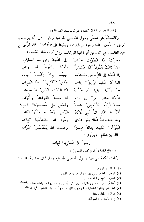 وَكَانَتْ قُرَيْشٌ تسمّى رَسُول الله صَلَّى اللهُ عَلَيْهِ وَسَلَّمَ، قبل أَن ينزل عَلَيْهِ الْوَحْي: الْأمين. فَلَمَّا فرغوا من الْبُنيان، وبنوها على مَا أَرَادوا، قَالَ الزّبير بن عبد الْمطلب، فِيمَا كَانَ من أَمر الحيّة الَّتِي كَانَت قُرَيْشٌ تَهَابُ بُنْيَانَ الْكَعْبَةِ لَهَا: