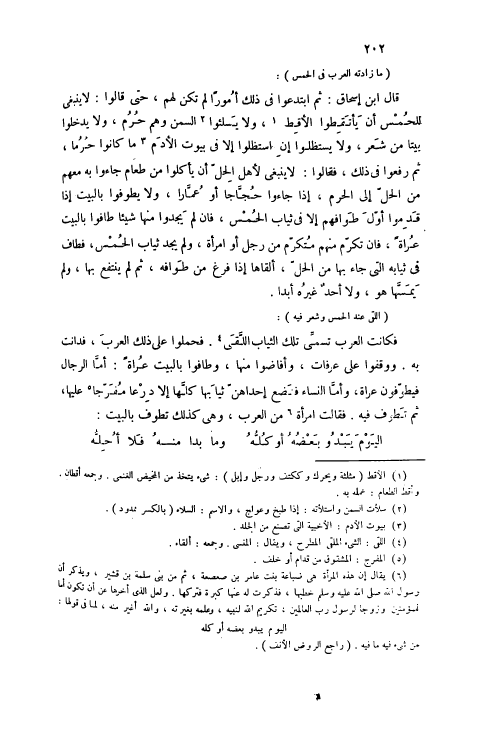 قَالَ ابْنُ إسْحَاقَ: ثُمَّ ابْتَدَعُوا فِي ذَلِكَ أُمُورًا لَمْ تَكُنْ لَهُمْ، حَتَّى قَالُوا: لَا يَنْبَغِي لِلْحُمْسِ أَنْ يَأْتَقِطُوا الْأَقِطَ [1] ، وَلَا يَسْلَئُوا [2] السَّمْنَ وَهُمْ حُرُمٌ، وَلَا يَدْخُلُوا بَيْتًا مِنْ شَعَرٍ، وَلَا يَسْتَظِلُّوا إنْ اسْتَظَلُّوا إلَّا فِي بُيُوتِ الْأَدَمِ [3] مَا كَانُوا حُرُمًا، ثُمَّ رَفَعُوا فِي ذَلِكَ، فَقَالُوا: لَا يَنْبَغِي لِأَهْلِ الْحِلِّ أَنْ يَأْكُلُوا مِنْ طَعَامٍ جَاءُوا بِهِ مَعَهُمْ مِنْ الْحِلِّ إلَى الْحَرَمِ، إذَا جَاءُوا حُجَّاجًا أَوْ عُمَّارًا، وَلَا يَطُوفُوا بِالْبَيْتِ إذَا قَدِمُوا أَوَّلَ طَوَافِهِمْ إلَّا فِي ثِيَابِ الْحُمْسِ، فَإِنَّ لَمْ يَجِدُوا مِنْهَا شَيْئًا طَافُوا بِالْبَيْتِ عُرَاةً، فَإِنْ تَكَرَّمَ مِنْهُمْ مُتَكَرِّمٌ مِنْ رَجُلٍ أَوْ امْرَأَةٍ، وَلَمْ يَجِدْ ثِيَابَ الْحُمْسِ، فَطَافَ فِي ثِيَابِهِ الَّتِي جَاءَ بِهَا مِنْ الْحِلِّ، أَلْقَاهَا إذَا فَرَغَ مِنْ طَوَافِهِ، ثُمَّ لَمْ يَنْتَفِعْ بِهَا، وَلَمْ يَمَسَّهَا هُوَ، وَلَا أَحَدٌ غَيْرُهُ أَبَدًا.