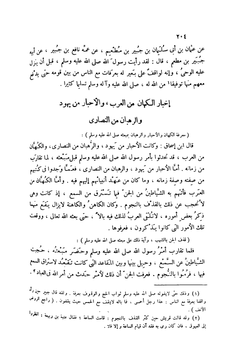 قَالَ ابْنُ إسْحَاقَ: وَكَانَتْ الْأَحْبَارُ مِنْ يَهُودَ، وَالرُّهْبَانُ مِنْ النَّصَارَى، وَالْكُهَّانُ مِنْ الْعَرَبِ، قَدْ تَحَدَّثُوا بِأَمْرِ رَسُولِ اللَّهِ صَلَّى اللهُ عَلَيْهِ وَسَلَّمَ قَبْلَ مَبْعَثِهِ، لَمَّا تَقَارَبَ مِنْ زَمَانِهِ. أَمَّا الْأَحْبَارُ مِنْ يَهُودَ، وَالرُّهْبَانُ مِنْ النَّصَارَى، فَعَمَّا وَجَدُوا فِي كُتُبِهِمْ مِنْ صِفَتِهِ وَصِفَةِ زَمَانِهِ، وَمَا كَانَ مِنْ عَهْدِ أَنْبِيَائِهِمْ إلَيْهِمْ فِيهِ. وَأَمَّا الْكُهَّانُ مِنْ الْعَرَبِ فَأَتَتْهُمْ بِهِ الشَّيَاطِينُ مِنْ الْجِنِّ فِيمَا تَسْتَرِقُ مِنْ السَّمْعِ، إذْ كَانَتْ وَهِيَ لَا تُحْجَبُ عَنْ ذَلِكَ بِالْقَذْفِ بِالنُّجُومِ. وَكَانَ الْكَاهِنُ وَالْكَاهِنَةُ لَا يَزَالُ يَقَعُ مِنْهُمَا ذِكْرُ بَعْضِ أُمُورِهِ، لَا تُلْقِي الْعَرَبُ لِذَلِكَ فِيهِ بَالًا، حَتَّى بَعَثَهُ اللَّهُ تَعَالَى، وَوَقَعَتْ تِلْكَ الْأُمُورُ الَّتِي كَانُوا يَذْكُرُونَ، فَعَرَفُوهَا.