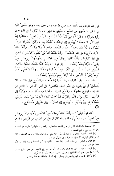 وَكَانَ قَوْلُ الْجِنِّ: «وَأَنَّهُ كانَ رِجالٌ مِنَ الْإِنْسِ يَعُوذُونَ بِرِجالٍ مِنَ الْجِنِّ، فَزادُوهُمْ رَهَقاً 72: 6» . أَنَّهُ كَانَ الرَّجُلُ مِنْ الْعَرَبِ مِنْ قُرَيْشٍ وَغَيْرِهِمْ