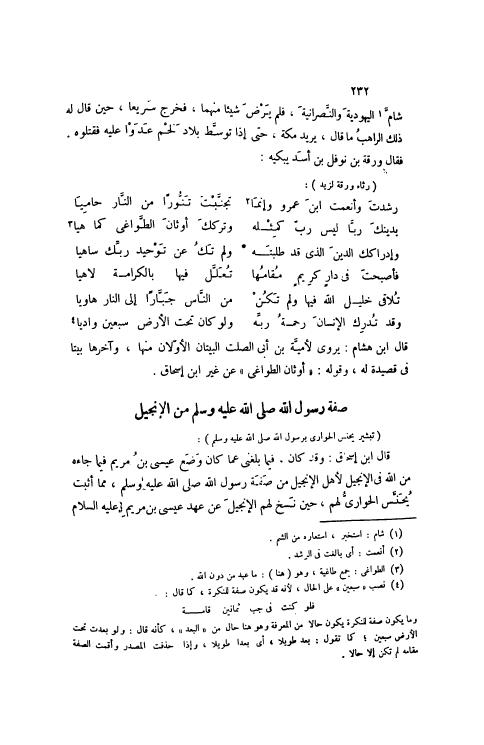 قَالَ ابْنُ هِشَامٍ: يُرْوَى لِأُمَيَّةَ بْنِ أَبِي الصَّلْتِ الْبَيْتَانِ الْأَوَّلَانِ مِنْهَا، وَآخِرُهَا بَيْتًا فِي قَصِيدَةٍ لَهُ، وَقَوْلُهُ: «أَوْثَانِ الطَّوَاغِي» عَنْ غَيْرِ ابْنِ إسْحَاقَ.