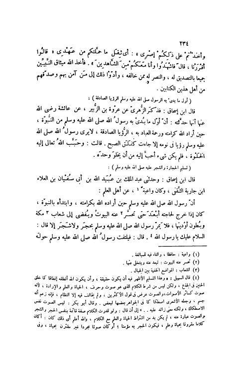 أَنَّ رَسُولَ اللَّهِ صَلَّى اللهُ عَلَيْهِ وَسَلَّمَ حِينَ أَرَادَهُ اللَّهُ بِكَرَامَتِهِ، وَابْتَدَأَهُ بِالنُّبُوَّةِ، كَانَ إذَا خَرَجَ لِحَاجَتِهِ أَبْعَدَ حَتَّى تَحَسَّرَ [2] عَنْهُ الْبُيُوتُ وَيُفْضِي إلَى شِعَابِ [3] مَكَّةَ وَبُطُونِ أَوْدِيَتِهَا، فَلَا يَمُرُّ رَسُولُ اللَّهِ صَلَّى اللهُ عَلَيْهِ وَسَلَّمَ بِحَجَرٍ وَلَا شَجَرٍ إلَّا قَالَ: