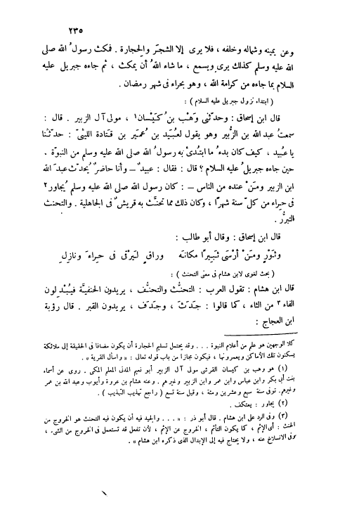 سَمِعْتُ عَبْدَ اللَّهِ بْنَ الزُّبَيْرِ وَهُوَ يَقُولُ لِعُبَيْدِ بْنِ عُمَيْرِ بْنِ قَتَادَةَ اللَّيْثَيَّ: حَدِّثْنَا يَا عُبَيْدُ، كَيْفَ كَانَ بَدْءُ مَا اُبْتُدِئَ بِهِ رَسُولُ اللَّهِ صَلَّى اللهُ عَلَيْهِ وَسَلَّمَ مِنْ النُّبُوَّةِ، حِينَ جَاءَهُ جِبْرِيلُ عَلَيْهِ السَّلَامُ؟ قَالَ: فَقَالَ: عُبَيْدٌ- وَأَنَا حَاضِرٌ يُحَدِّثُ عَبْدَ اللَّهِ ابْن الزُّبَيْرِ وَمَنْ عِنْدَهُ مِنْ النَّاسِ-: كَانَ رَسُولُ اللَّهِ صَلَّى اللهُ عَلَيْهِ وَسَلَّمَ يُجَاوِرُ [2] فِي حِرَاءٍ مِنْ كُلِّ سَنَةٍ شَهْرًا، وَكَانَ ذَلِكَ مِمَّا تَحَنَّثَ بِهِ قُرَيْشٌ فِي الْجَاهِلِيَّة. والتحنث التبرّر.
