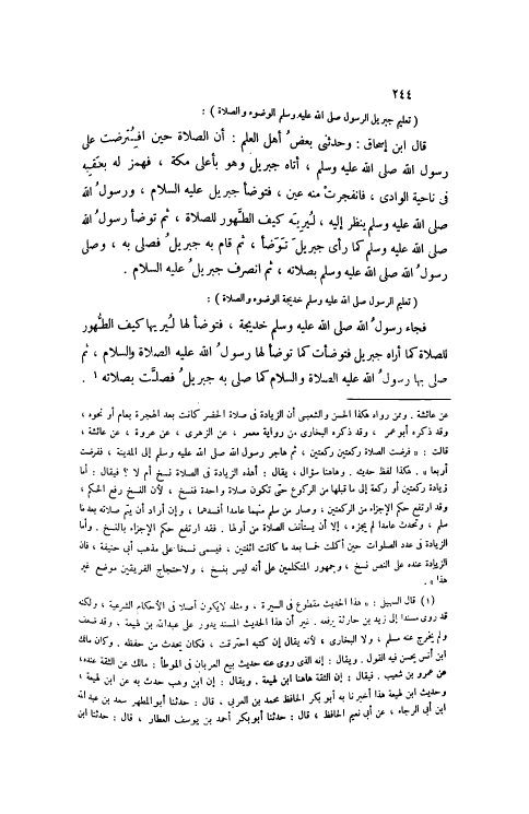قَالَ ابْنُ إسْحَاقَ: وَحَدَّثَنِي بَعْضُ أَهْلِ الْعِلْمِ: أَنَّ الصَّلَاةَ حِينَ اُفْتُرِضَتْ عَلَى رَسُولِ اللَّهِ صَلَّى اللهُ عَلَيْهِ وَسَلَّمَ، أَتَاهُ جِبْرِيلُ وَهُوَ بِأَعْلَى مَكَّةَ، فَهَمَزَ لَهُ بِعَقِبِهِ فِي نَاحِيَةِ الْوَادِي، فَانْفَجَرَتْ مِنْهُ عَيْنٌ، فَتَوَضَّأَ جِبْرِيلُ عَلَيْهِ السَّلَامُ، وَرَسُولُ اللَّهِ صَلَّى اللهُ عَلَيْهِ وَسَلَّمَ يَنْظُرُ إلَيْهِ، لِيُرِيَهُ كَيْفَ الطُّهُورُ لِلصَّلَاةِ، ثُمَّ تَوَضَّأَ رَسُولُ اللَّهِ صَلَّى اللهُ عَلَيْهِ وَسَلَّمَ كَمَا رَأَى جِبْرِيلَ تَوَضَّأَ، ثُمَّ قَامَ بِهِ جِبْرِيلُ فَصَلَّى بِهِ، وَصَلَّى رَسُولُ اللَّهِ صَلَّى اللهُ عَلَيْهِ وَسَلَّمَ بِصَلَاتِهِ، ثُمَّ انْصَرف جِبْرِيل عَلَيْهِ السَّلَام.