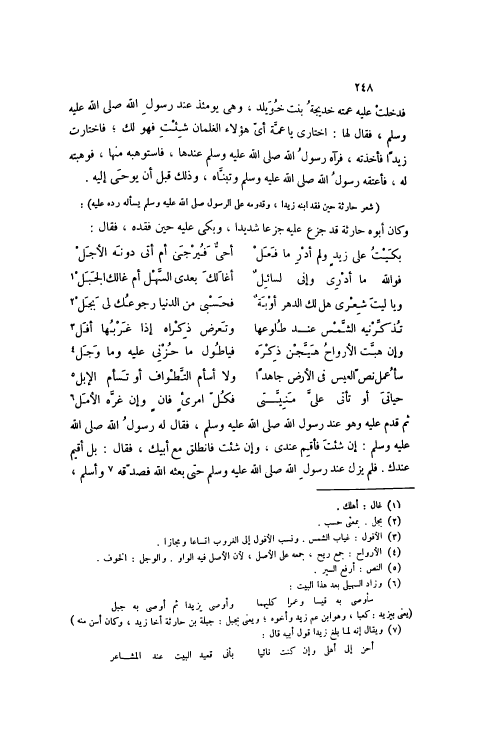 (شِعْرُ حَارِثَةَ حِينَ فَقَدْ ابْنَهُ زَيْدًا، وَقُدُومُهُ عَلَى الرَّسُولِ صَلَّى اللهُ عَلَيْهِ وَسَلَّمَ يَسْأَلُهُ رَدَّهُ عَلَيْهِ) :