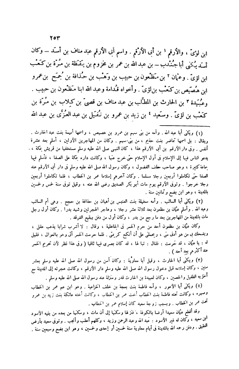 ابْن لُؤَيٍّ، وَالْأَرْقَمُ [1] بْنُ أَبِي الْأَرْقَمِ. وَاسْمُ أَبِي الْأَرْقَمِ عَبْدُ مَنَافِ بْنِ أَسَدٍ- وَكَانَ أَسَدٌ يُكَنَّى أَبَا جُنْدُبِ- بْنِ عَبْدِ اللَّهِ بْنِ عُمَرَ بْنِ مَخْزُومِ بْنِ يَقَظَةَ بْنِ مُرَّةَ بْنِ كَعْبِ ابْن لُؤَيٍّ. وَعُثْمَانُ [2] بْنُ مَظْعُونِ بْنِ حَبِيبِ بْنِ وَهْبِ بْنِ حُذَافَةَ بْنِ جُمَحَ بْنِ عَمْرِو ابْن هُصَيْصِ بْنِ كَعْبِ بْنِ لُؤَيٍّ. وَأَخَوَاهُ قَدَامَةُ وَعَبْدُ اللَّهِ ابْنَا مَظْعُونِ بْنِ حَبِيبٍ.