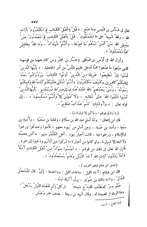 تَعَالَى فِي شَأْسِ بْنِ قَيْسٍ وَمَا صَنَعَ: قُلْ يَا أَهْلَ الْكِتابِ لِمَ تَكْفُرُونَ بِآياتِ اللَّهِ، وَالله شَهِيدٌ عَلى مَا تَعْمَلُونَ. قُلْ يَا أَهْلَ الْكِتابِ لِمَ تَصُدُّونَ عَنْ سَبِيلِ اللَّهِ مَنْ آمَنَ تَبْغُونَها عِوَجاً، وَأَنْتُمْ شُهَداءُ، وَمَا اللَّهُ بِغافِلٍ عَمَّا تَعْمَلُونَ 3: 98- 99.