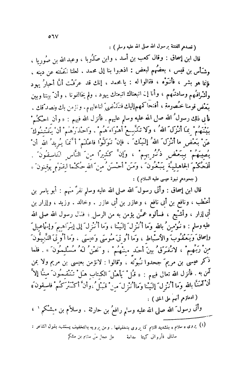 قَالَ ابْنُ إسْحَاقَ: وَأَتَى رَسُولَ اللَّهِ صَلَّى اللهُ عَلَيْهِ وَسَلَّمَ نَفَرٌ مِنْهُمْ: أَبُو يَاسِرِ بْنُ أَخْطَبَ، وَنَافِعُ بْنُ أَبِي نَافِعٍ، وَعَازِرُ بْنُ أَبِي عَازِرٍ، وَخَالِدٌ، وَزَيْدٌ، وَإِزَارُ بْنُ أَبِي إزَارٍ، وَأَشْيَعُ، فَسَأَلُوهُ عَمَّنْ يُؤْمِنُ بِهِ مِنْ الرُّسُلِ، فَقَالَ رَسُول الله صَلَّى اللهُ عَلَيْهِ وَسَلَّمَ: نؤمن باللَّه وَما أُنْزِلَ إِلَيْنا، وَما أُنْزِلَ إِلى إِبْراهِيمَ وَإِسْماعِيلَ وَإِسْحاقَ وَيَعْقُوبَ وَالْأَسْباطِ، وَما أُوتِيَ مُوسى وَعِيسى، وَما أُوتِيَ النَّبِيُّونَ مِنْ رَبِّهِمْ، لَا نُفَرِّقُ بَيْنَ أَحَدٍ مِنْهُمْ، وَنَحْنُ لَهُ مُسْلِمُونَ 2: 136. فَلَمَّا ذَكَرَ عِيسَى بن مَرْيَمَ جَحَدُوا نُبُوَّتَهُ، وَقَالُوا: لَا نُؤْمِنُ بِعِيسَى بن مَرْيَمَ وَلَا بِمَنْ آمَنَ بِهِ. فَأَنْزَلَ اللَّهُ تَعَالَى فِيهِمْ: قُلْ يَا أَهْلَ الْكِتابِ هَلْ تَنْقِمُونَ مِنَّا إِلَّا أَنْ آمَنَّا بِاللَّهِ وَما أُنْزِلَ إِلَيْنا وَما أُنْزِلَ مِنْ قَبْلُ، وَأَنَّ أَكْثَرَكُمْ فاسِقُونَ 5: 59
