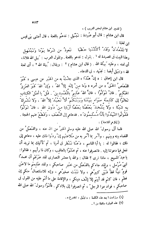 قَالَ ابْنُ هِشَامٍ: قَالَ أَبُو عُبَيْدَةَ: نَبْتَهِلْ: نَدْعُو بِاللَّعْنَةِ، قَالَ أَعْشَى بَنِي قَيْسِ ابْن ثَعْلَبَةَ: