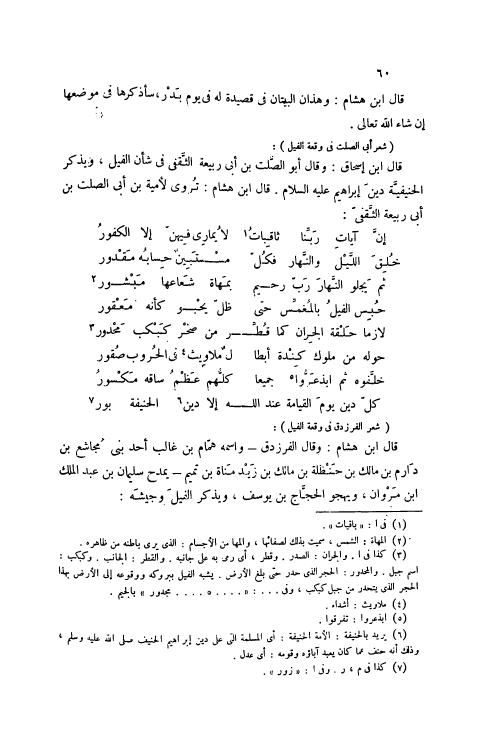قَالَ ابْنُ إسْحَاقَ: وَقَالَ أَبُو الصَّلْتِ بْنُ أَبِي رَبِيعَةَ الثَّقَفِيُّ فِي شَأْنِ الْفِيلِ، وَيَذْكُرُ الْحَنِيفِيَّةَ دِينَ إبْرَاهِيمَ عَلَيْهِ السَّلَامُ. قَالَ ابْنُ هِشَامٍ: تُرْوَى لِأُمَيَّةِ بْنِ أَبِي الصَّلْتِ بْنِ أَبِي رَبِيعَةَ الثَّقَفِيِّ: