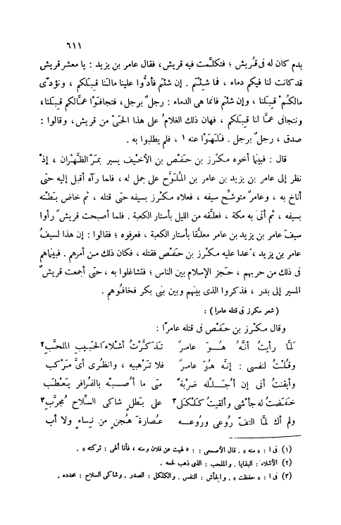 (شِعْرُ مِكْرَزٍ فِي قَتْلِهِ عَامِرًا) :