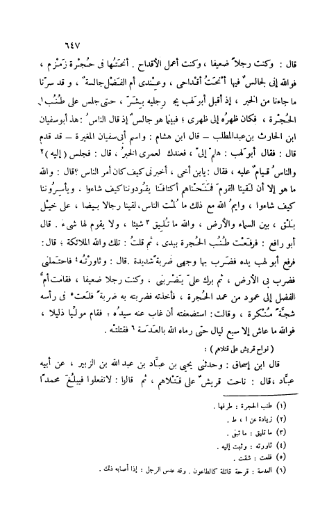 فَرَفَعَ أَبُو لَهَبٍ يَدَهُ فَضَرَبَ بِهَا وَجْهِي ضَرْبَةً شَدِيدَة. قَالَ: وثاورته [4] فَاحْتَمَلَنِي فَضَرَبَ بِي الْأَرْضَ، ثُمَّ بَرَكَ عَلَيَّ يَضْرِبُنِي، وَكُنْتُ رَجُلًا ضَعِيفًا، فَقَامَتْ أُمُّ الْفَضْلِ إلَى عَمُودٍ مِنْ عُمُدِ الْحُجْرَةِ، فَأَخَذَتْهُ فَضَرَبَتْهُ بِهِ ضَرْبَة فلعت [5] فِي رَأْسِهِ شَجَّةً مُنْكَرَةً، وَقَالَتْ: اسْتَضْعَفَتْهُ أَنْ غَابَ عَنْهُ سَيِّدُهُ، فَقَامَ مولّيا ذليلا، فو الله مَا عَاشَ إلَّا سَبْعَ لَيَالٍ حَتَّى رَمَاهُ اللَّهُ بِالْعَدَسَةِ [6] فَقَتَلَتْهُ.