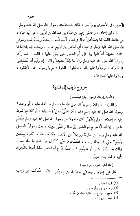 قَالَ ابْنُ إسْحَاقَ: فَحَدَّثَنِي عَبْدُ اللَّهِ بْنُ أَبِي بَكْرٍ، قَالَ: حُدِّثْتُ عَنْ زَيْنَبَ
