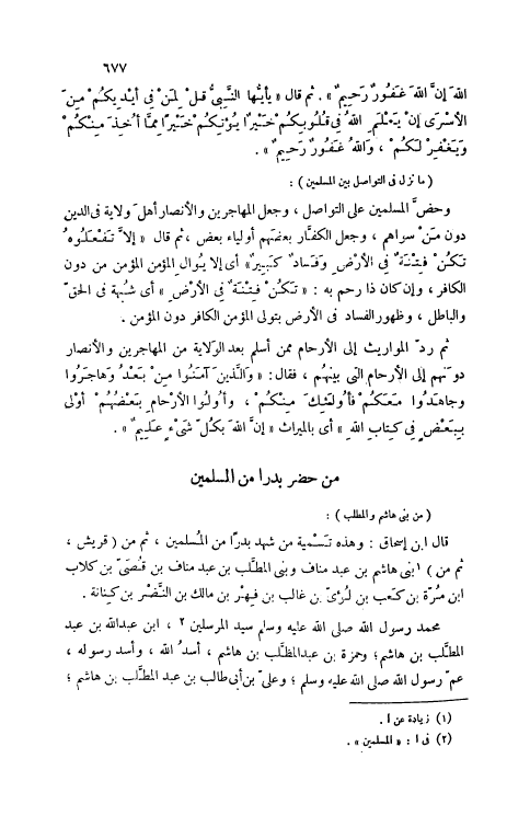 قَالَ ابْنُ إسْحَاقَ: وَهَذِهِ تَسْمِيَةُ مَنْ شَهِدَ بَدْرًا مِنْ الْمُسْلِمِينَ، ثُمَّ مِنْ (قُرَيْشٍ، ثُمَّ مِنْ) [1] بَنِي هَاشِمِ بْنِ عَبْدِ مَنَافٍ وَبَنِي الْمُطَّلِبِ بْنِ عَبْدِ مَنَافِ بْنِ قُصَيِّ بْنِ كِلَابِ ابْن مُرَّةَ بْنِ كَعْبِ بْنِ لُؤَيِّ بْنِ غَالِبِ بْنِ فِهْرِ بْنِ مَالِكِ بْنِ النَّضْرِ بْنِ كِنَانَةَ.