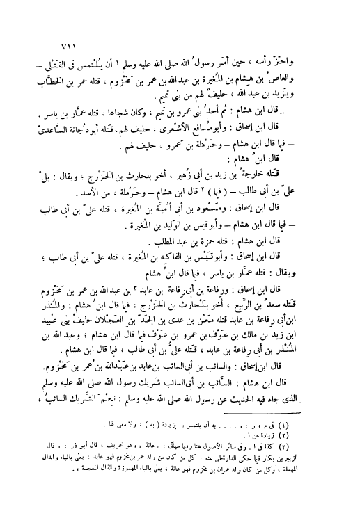 وَاحْتَزَّ رَأْسَهُ، حِينَ أَمَرَ رَسُولُ اللَّهِ صَلَّى اللهُ عَلَيْهِ وَسَلَّمَ [1] أَنْ يُلْتَمَسَ فِي الْقَتْلَى- وَالْعَاصِ بْنُ هِشَامِ بْنِ الْمُغِيرَةِ بْنِ عَبْدِ اللَّهِ بْنِ عُمَرَ بْنِ مَخْزُومٍ، قَتَلَهُ عُمَرُ بْنُ الْخَطَّابِ وَيَزِيدُ بْنُ عَبْدِ اللَّهِ، حَلِيفٌ لَهُمْ مِنْ بَنِي تَمِيمٍ.