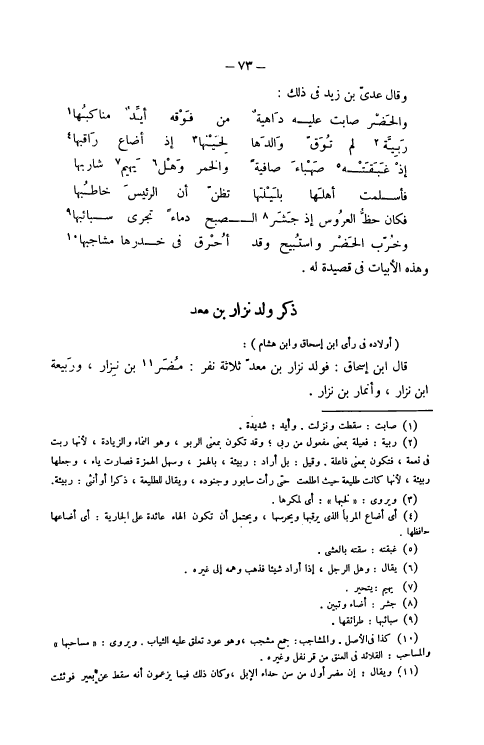 قَالَ ابْنُ إسْحَاقَ: فَوَلَدَ نِزَارُ بْنُ مَعَدٍّ ثَلَاثَةَ نَفَرٍ: مُضَرَ [11] بْنَ نِزَارٍ، وَرَبِيعَةَ ابْن نِزَارٍ، وأَنْمَارَ بْنَ نِزَارٍ.