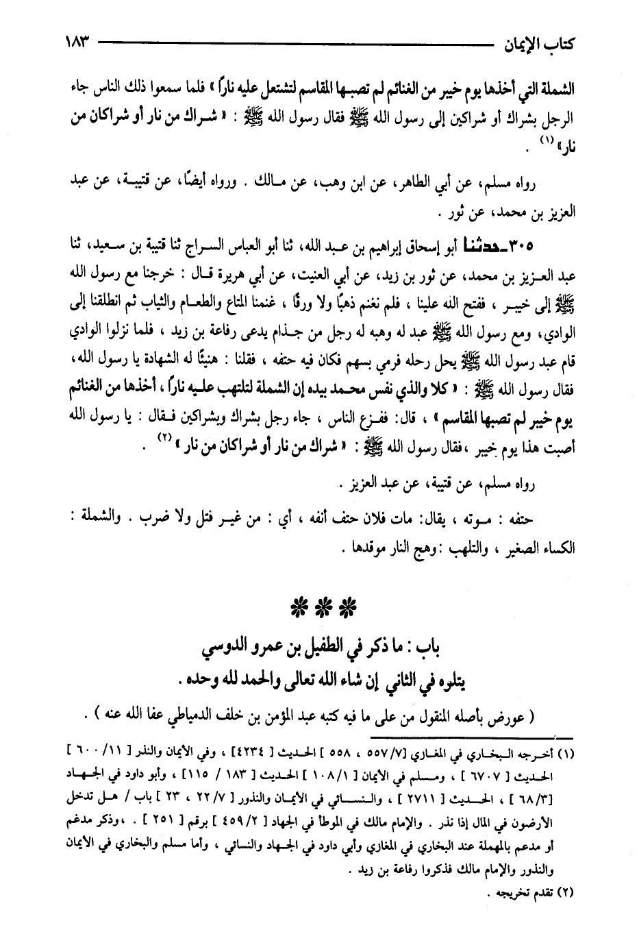 - بَابُ مَا ذُكِرَ فِي الطُّفَيْلِ بْنِ عَمْرٍو الدَّوْسِيِّ يَتْلُوهُ فِي الثَّانِي إِنْ شَاءَ اللَّهُ تَعَالَى وَالْحَمْدُ لله وَحده