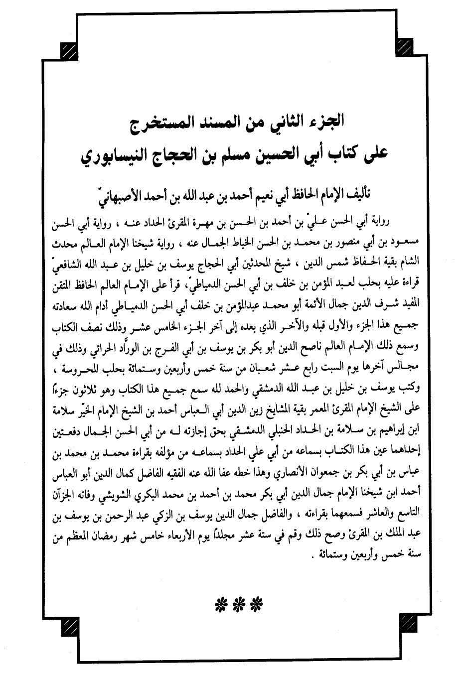 الْجُزْء الثَّانِي مِنَ الْمُسْنَدِ الْمُسْتَخْرَجِ عَلَى كِتَابِ أبي الْحُسَيْن مُسلم بن الْحجَّاج النَّيْسَابُورِي