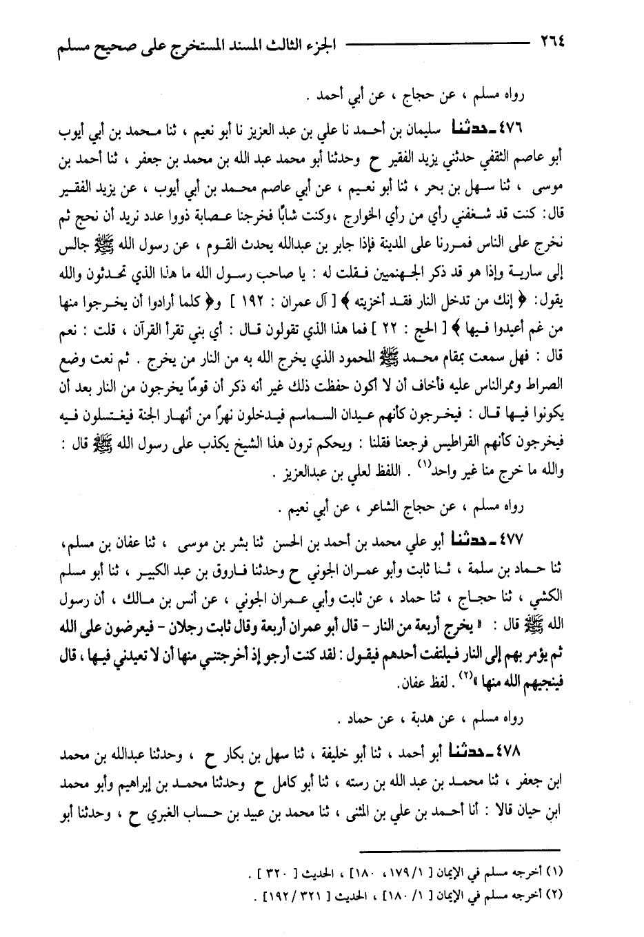 رَوَاهُ مُسْلِمٌ عَنْ حَجَّاجٍ الشَّاعِرِ عَنْ أَبِي نُعَيْمٍ
