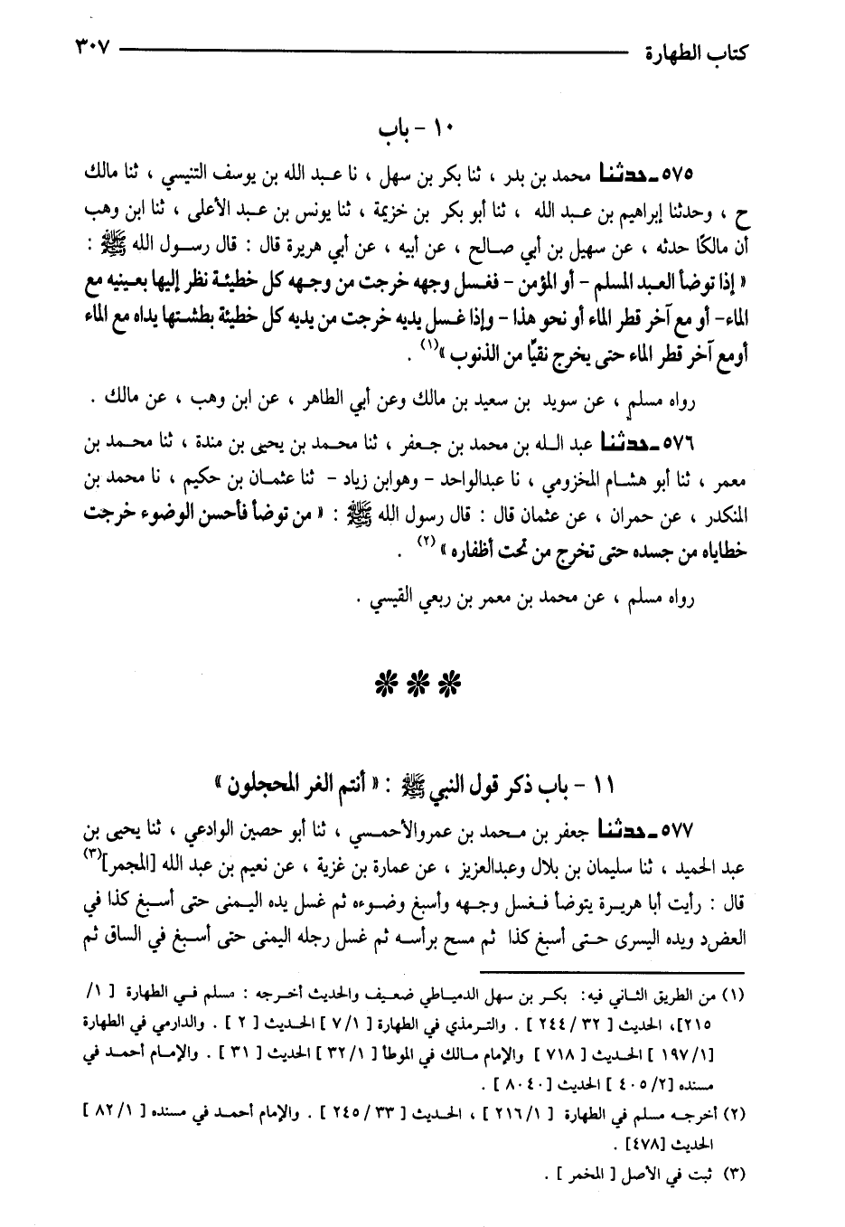 11 - بَابُ ذِكْرِ قَوْلِ النَّبِيِّ صَلَّى اللَّهُ عَلَيْهِ وَسَلَّمَ (أَنْتُمُ الْغُرُّ الْمُحَجَّلُونَ)
