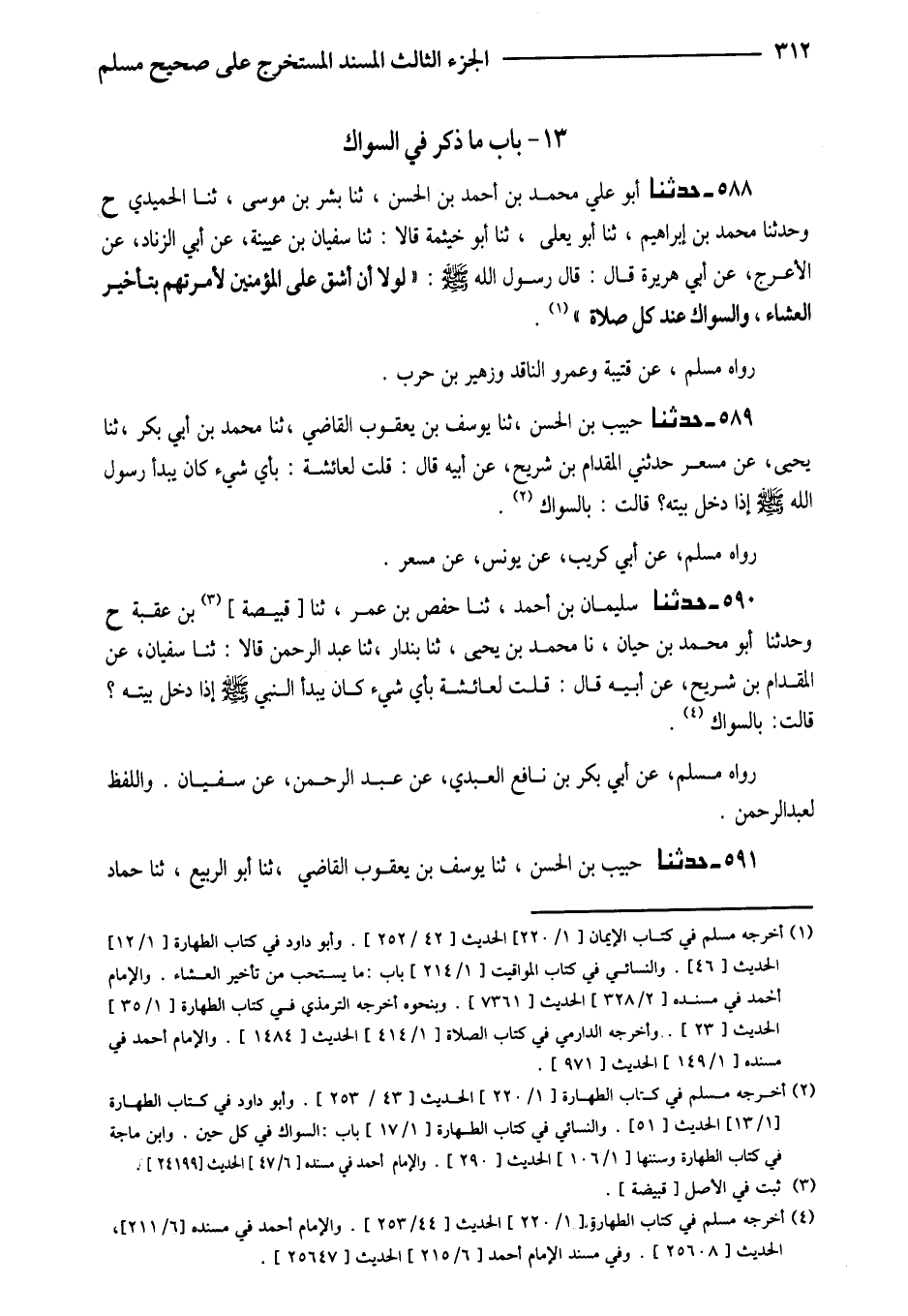 رَوَاهُ مُسْلِمٌ عَنْ قُتَيْبَةَ وَعَمْرٍو النَّاقِدِ وَزُهَيْرِ بْنِ حَرْبٍ