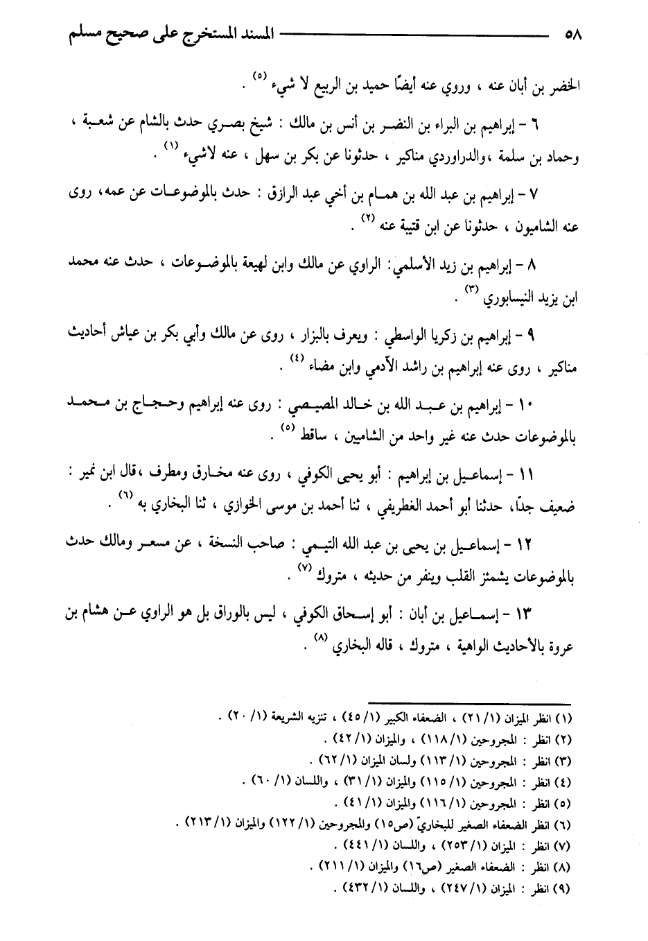 13 - إِسْمَاعِيلُ بْنُ أَبَانَ أَبُو إِسْحَاقَ الْكُوفِيُّ لَيْسَ بِالْوَرَّاقِ بَلْ هُوَ الرَّاوِي عَنْ هِشَامِ بْنِ عُرْوَةَ بِالأَحَادِيثِ الْوَاهِيَةِ مَتْرُوكٌ قَالَهُ الْبُخَارِيُّ