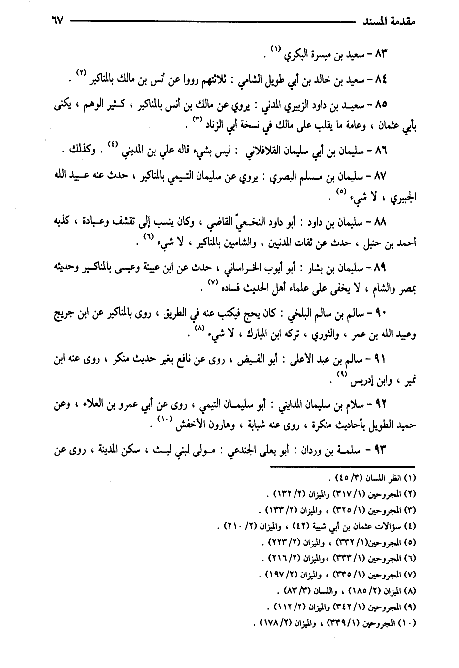 92 - سَلامُ بْنُ سُلَيْمَانَ الْمَدَايِنِيُّ أَبُو سُلَيْمَانَ التَّيْمِيُّ رَوَى عَنْ أَبِي عَمْرِو بْنِ الْعَلاءِ وَعَنْ حُمَيْدٍ الطَّوِيلِ بِأَحَادِيثَ مُنْكَرَةٍ رَوَى عَنْهُ شَبَابَةُ وَهَارُونُ الأَخْفَشُ