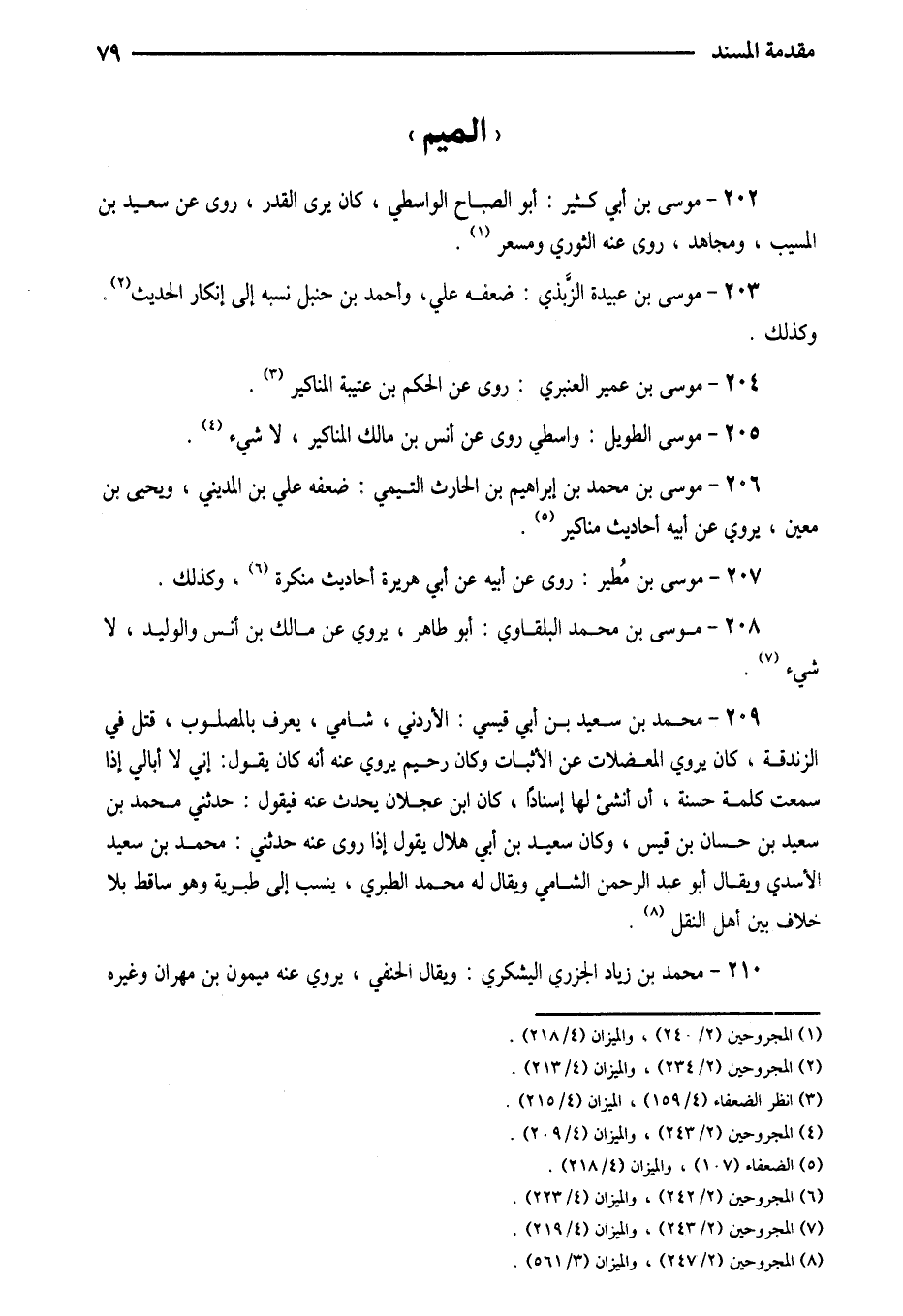 206 - مُوسَى بْنُ مُحَمَّدِ بْنِ إِبْرَاهِيمَ بْنِ الْحَارِثِ التَّيْمِيُّ ضَعَّفَهُ عَلِيُّ بْنُ الْمَدِينِيِّ وَيَحْيَى بْنُ مَعِينٍ يَرْوِي عَنْ أَبِيهِ أَحَادِيثَ مَنَاكِيرَ