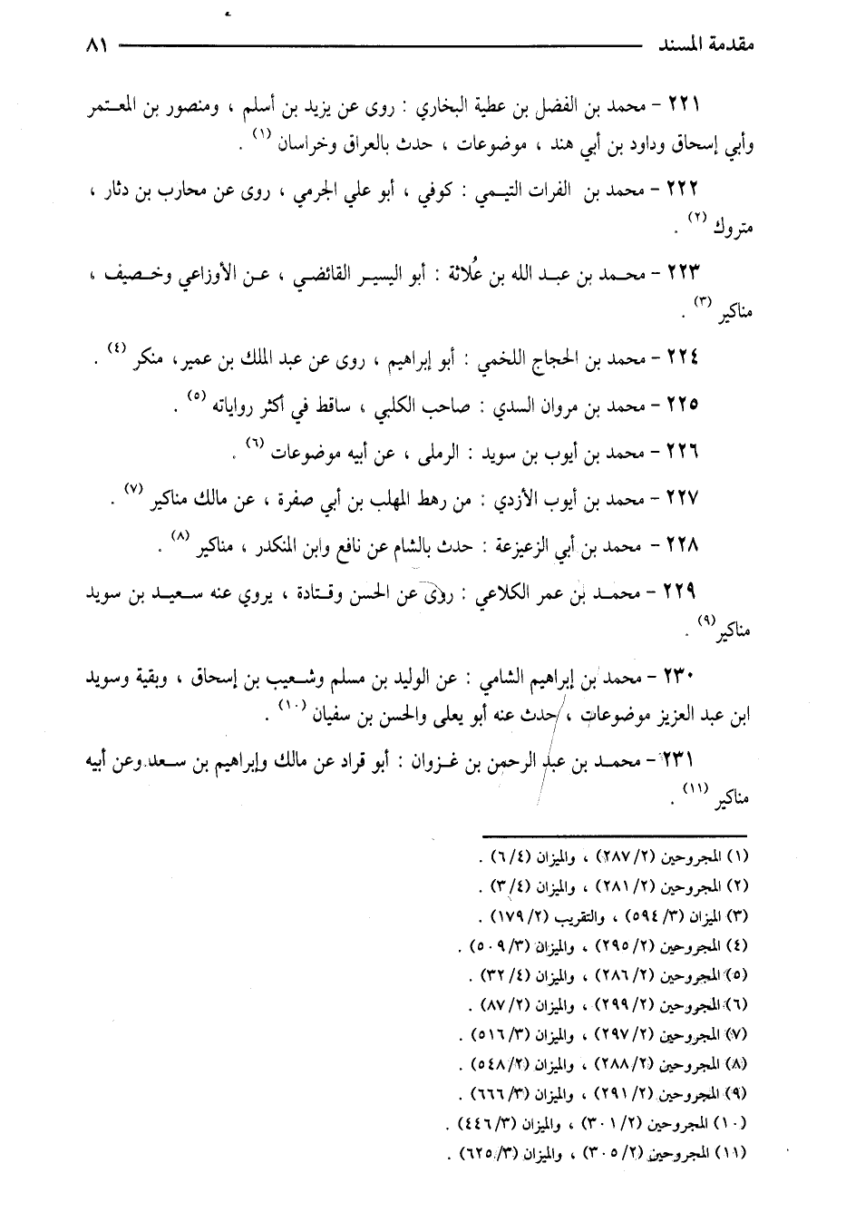 221 - مُحَمَّدُ بْنُ الْفَضْلِ بْنِ عَطِيَّةَ البُخَارِيّ روى عَنْ يَزِيدَ بْنِ أَسْلَمَ وَمَنْصُورٍ بن الْمُعْتَمِر وَأَبِي إِسْحَاقَ وَدَاوُدَ بْنِ أَبِي هِنْدٍ مَوْضُوعَات حَدَّثَ بِالْعِرَاقِ وَخُرَاسَانَ