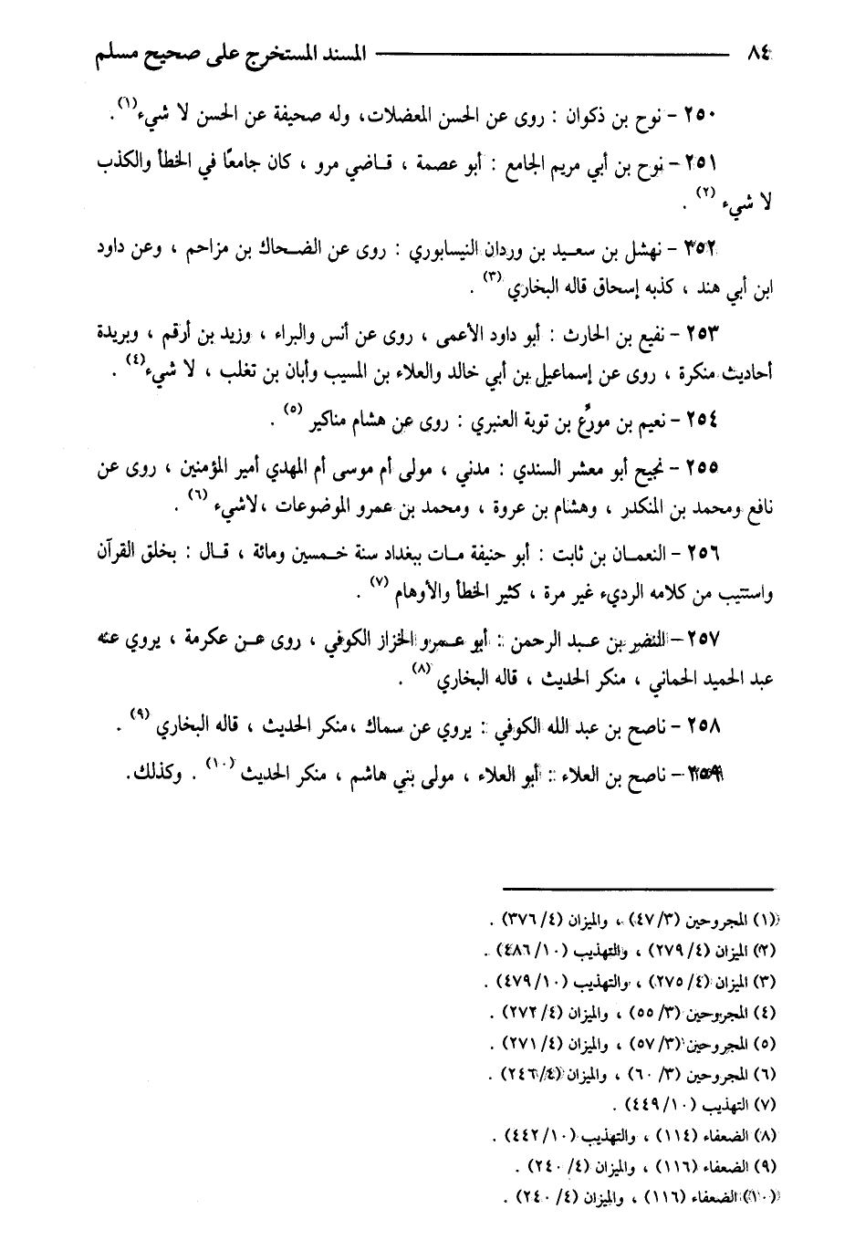 256 - النُّعْمَانُ بْنُ ثَابِتٍ أَبُو حَنِيفَةَ مَاتَ بِبَغْدَادَ سَنَةَ خَمْسِينَ وَمِائَةٍ قَالَ بِخَلْقِ الْقُرْآنِ وَاسْتُتِيبَ مِنْ كَلامِهِ الرَّدِيءِ غَيْرَ مَرَّةٍ كَثِيرُ الْخَطَأِ وَالأَوْهَامِ