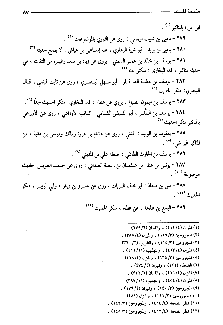 284 - يُوسُفُ بْنُ السَّقَرِ أَبُو الْفَيْضِ الشَّامِيُّ كَاتِبُ الأَوْزَاعِيِّ رَوَى عَنِ الأَوْزَاعِيِّ بِالْمَنَاكِيرِ مُنْكَرُ الْحَدِيثِ 285 يَعْقُوبُ بْنُ الْوَلِيدِ الْمَدَنِيُّ رَوَى عَنْ هِشَامِ بْنِ عُرْوَةَ وَمَالِكٍ وَمُوسَى بْنِ عُقْبَةَ من الْمَنَاكِير غير شَيْء