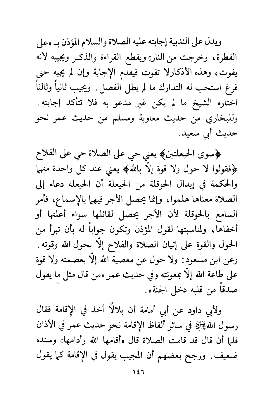 وعن ابن مسعود: ولا حول عن معصية الله إلا بعصمته ولا قوة على طاعة الله إلا بمعونته وفي حديث عمر "من قال مثل ما يقول صدقً من قلبه دخل الجنة".