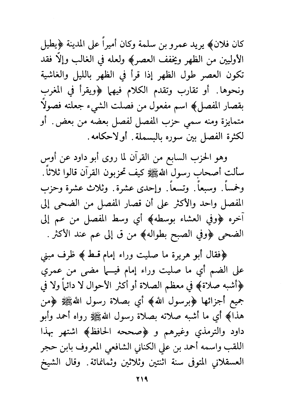 (فقال أبو هريرة ما صليت وراء إمام قط) ظرف مبني على الضم أي ما صليت وراء إمام فيما مضى من عمري (أشبه صلاة) في معظم الصلاة أو أكثر الأحوال لا دائمًا ولا في جميع أجزائها (برسول الله) أي بصلاة رسول الله – - صلى الله عليه وسلم - (من هذا) أي ما أشبه صلاته بصلاة رسول الله - صلى الله عليه وسلم - رواه أحمد وأبو داود والترمذي وغيرهم و (صححه الحافظ) اشتهر بهذا اللقب واسمه أحمد بن علي الكناني الشافعي المعروف بابن حجر العسقلاني المتوفى سنة اثنتين وثلاثين وثمانمائة. وقال الشيخ